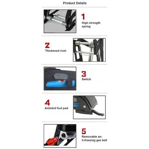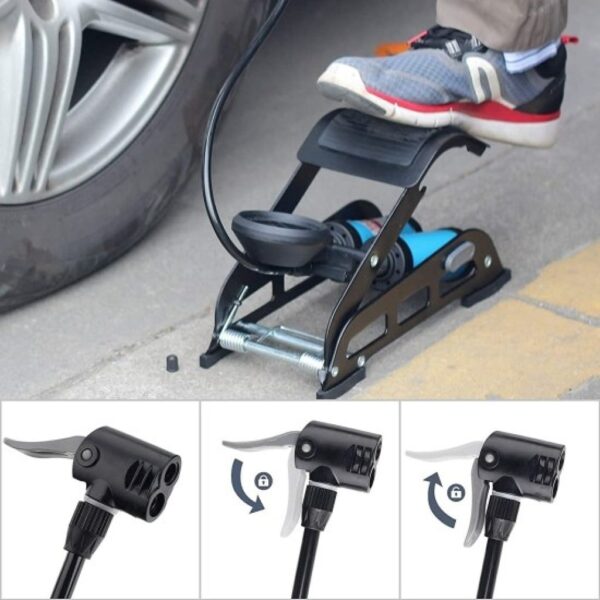 Easy to store: Mini in its size and easy could be easily folded, so you can carry it with little space in your car. Multiple Accessories: 3 in 1 nozzle makes the foot pump fit for bicycles, motorcycles, air beds and cars.