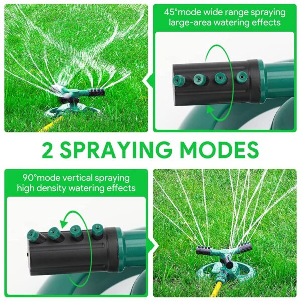 - Automatic Rotation : Without any auxiliary equipment, the sprinkler can rotate 360 degrees to irrigate your yard just by household water supply pressure.
