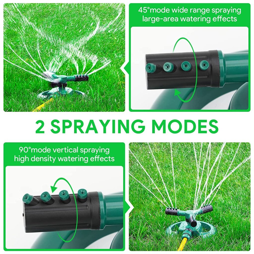 - Easy use : Rotating spray nozzles allow for customizable watering to meet your lawn’s exact needs. The angle can be set to 90 degrees for more compact watering or 45 degrees for watering larger areas.