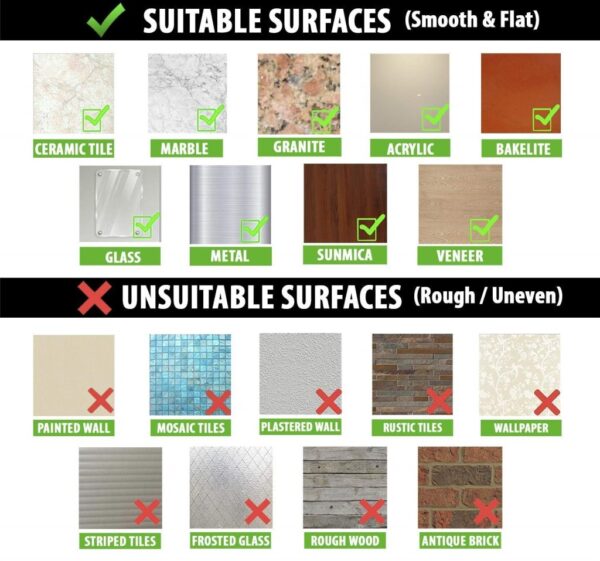 HASSLE-FREE INSTALLATION: No More ugly holes in your bathroom or kitchen. Simply choose a smooth surface such as tiles, glass, metal, etc. Apply it & you’re done in No Time