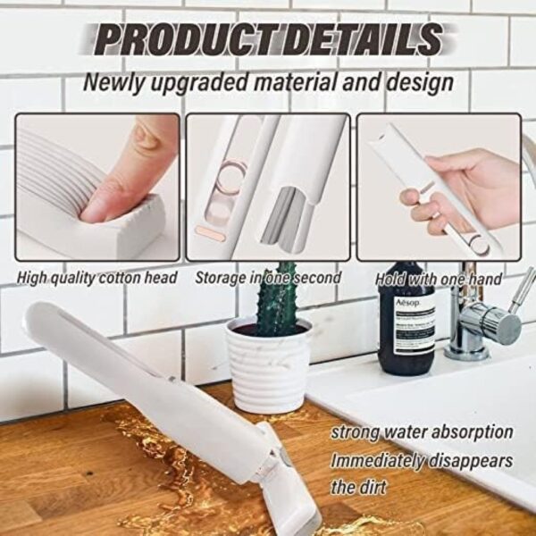 Material: Our mini mop is made of high quality material, the ecological cotton head is strong in adsorption, easy to clean and convenient for each use, and the finger ring push-pull design is easy to dehydrate more thoroughly.