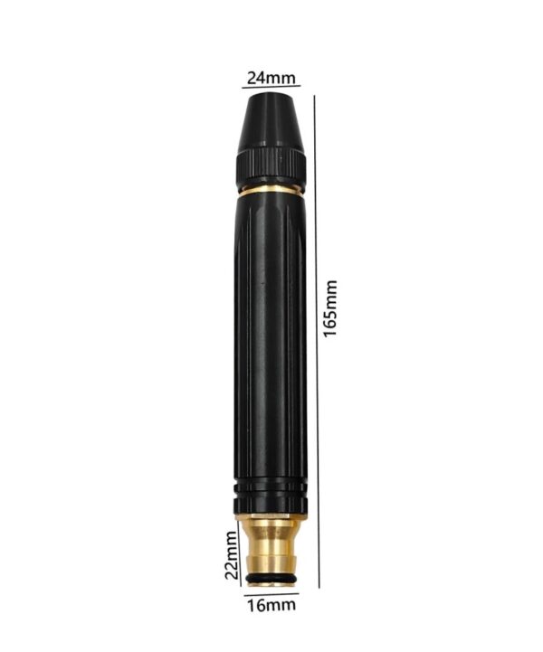 Transform your regular garden hose into a powerful jet pressure stream. With bold nozzle, say goodbye to repeated rinsing, make your work more efficient. Car washing gun ‘s length is 16 cm. With round shape, car washer high pressure gun is super easy to hold in hand.